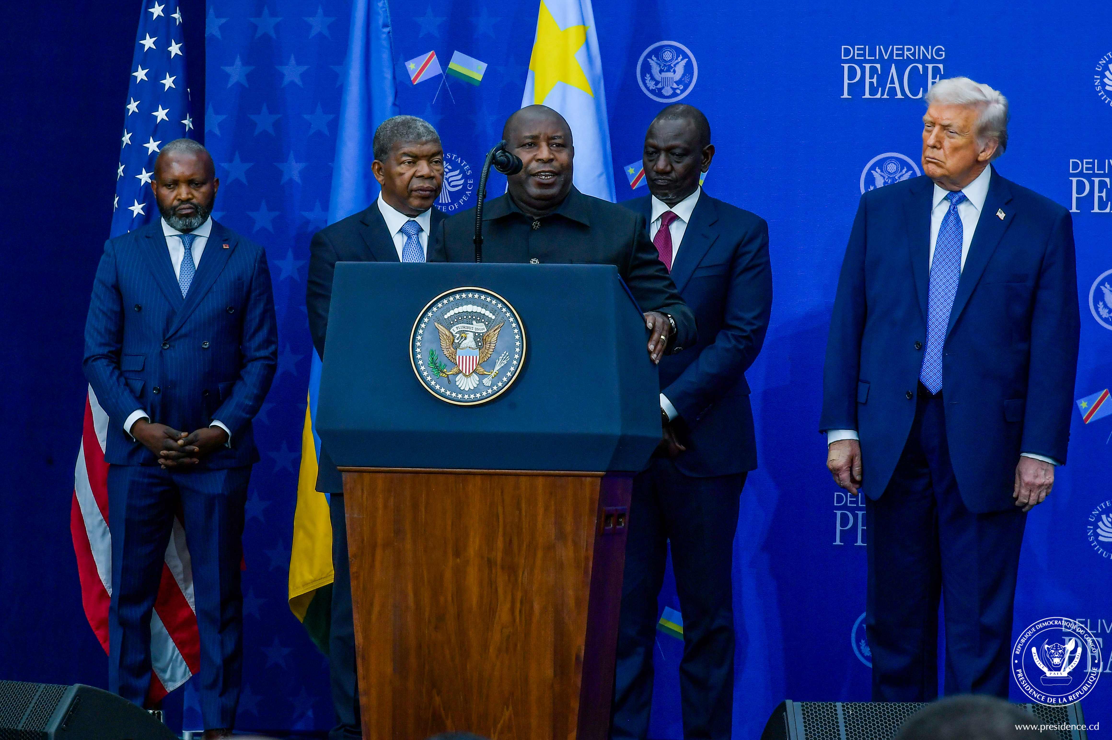 « La République Démocratique du Congo prend ici l’engagement solennel de mettre en œuvre, en toute sincérité, l’ensemble des obligations qui découlent de ces Accords. Nous le ferons avec sérieux, avec rigueur et avec le souci constant de la paix, de la sécurité de nos populations, de l’unité et de l’intégrité de notre territoire »,a déclaré le Président de la République Félix-Antoine Tshisekedi, lors de la cérémonie de signature de l'accord de paix entre la RDC et le Rwanda organisée sous l'égide des États-Unis d'Amérique, ce jeudi 4 décembre 2025, au Donald J. Trump Institute of Peace.