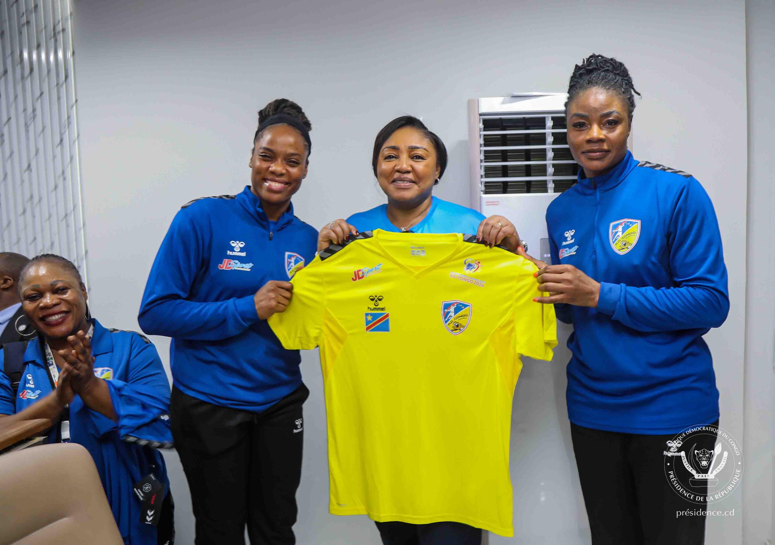 Le Président Félix Tshisekedi a reçu, ce mardi au Stade des Martyrs, les joueuses de l’équipe féminine de handball de la République Démocratique du Congo (RDC) qui venait de se qualifier pour les quarts de finale de la 26ème édition du Championnat d'Afrique des nations de handball seniors dames organisée à Kinshasa.