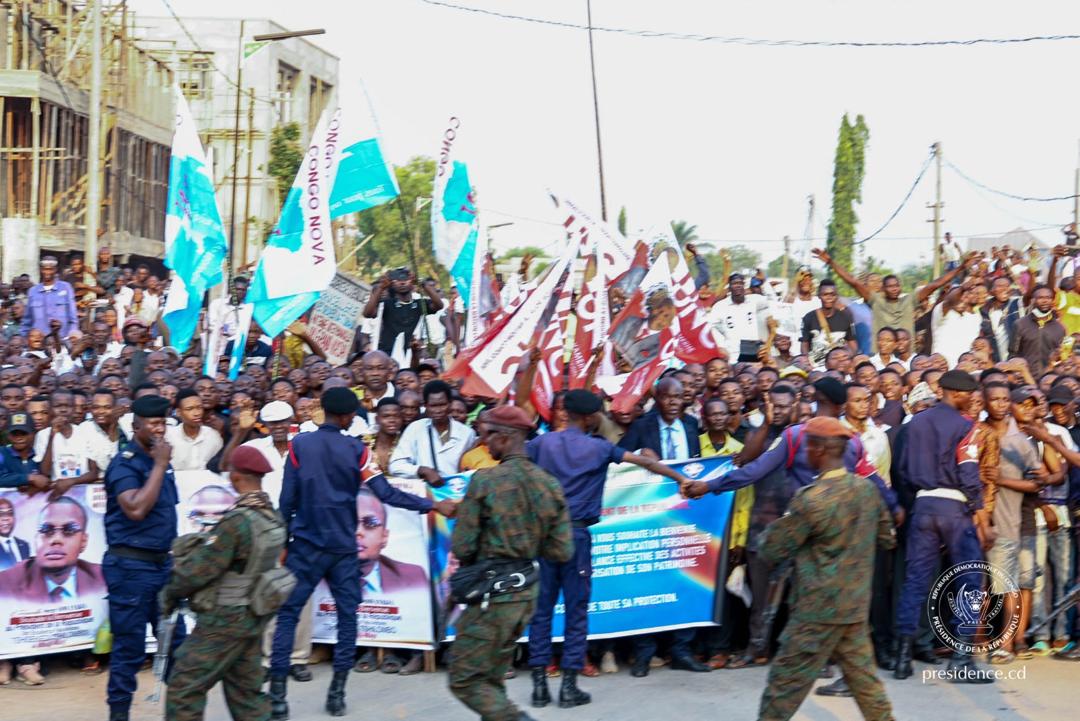 Après les traditionnels honneurs militaires, le Président de la République a été accompagné par une longue procession pédestre de la population de Mbujimayi jusqu’à sa résidence officielle.
