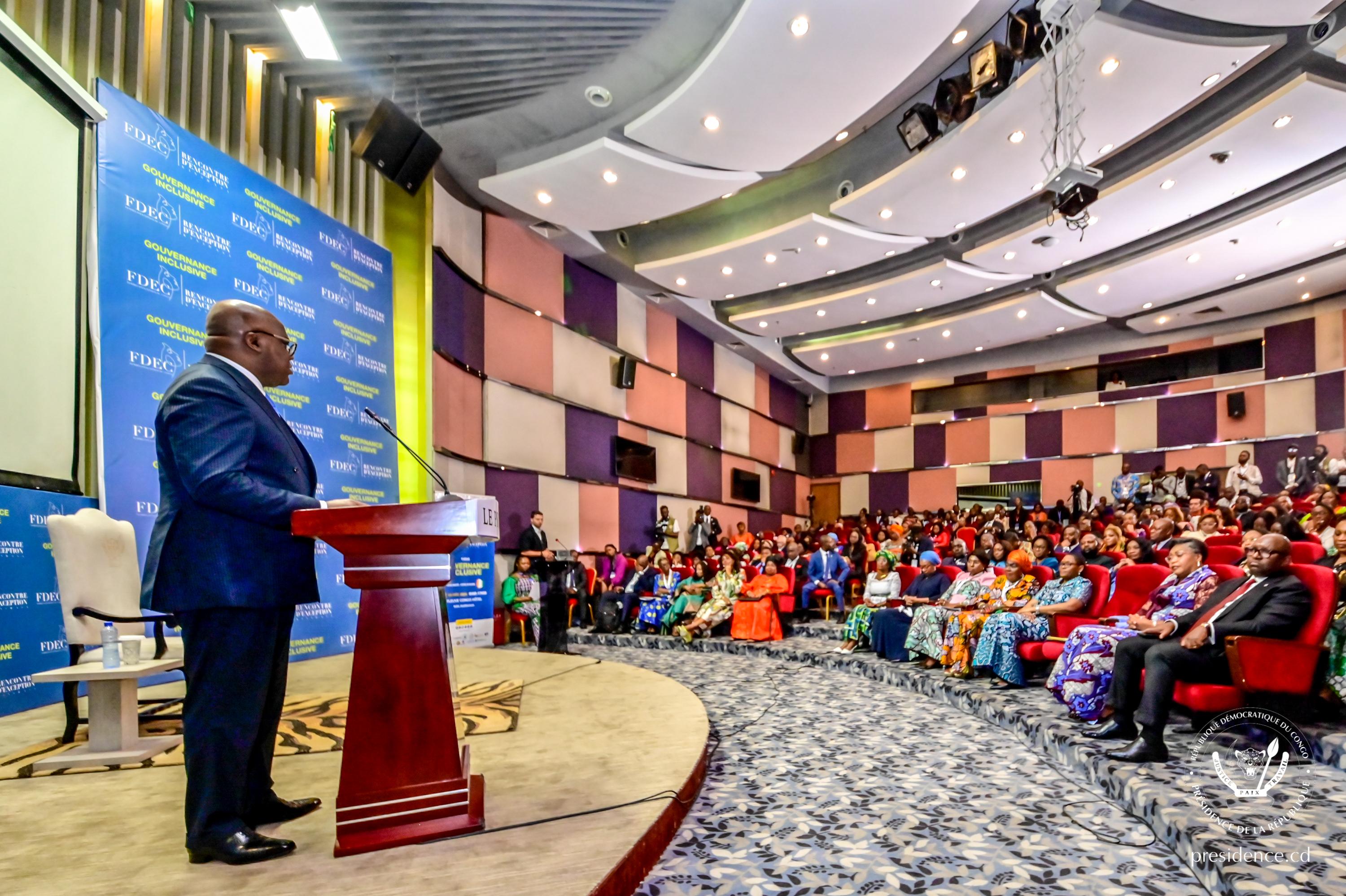Ce mardi 03 décembre 2024 à l'auditorium du Fleuve Congo Hôtel, à Kinshasa, dans la commune de la Gombe, le Président Félix-Antoine Tshisekedi Tshilombo, Champion de la masculinité positive, a rehaussé de sa présence la première conférence organisée par les Femmes d'exception du Congo (FDEC).
