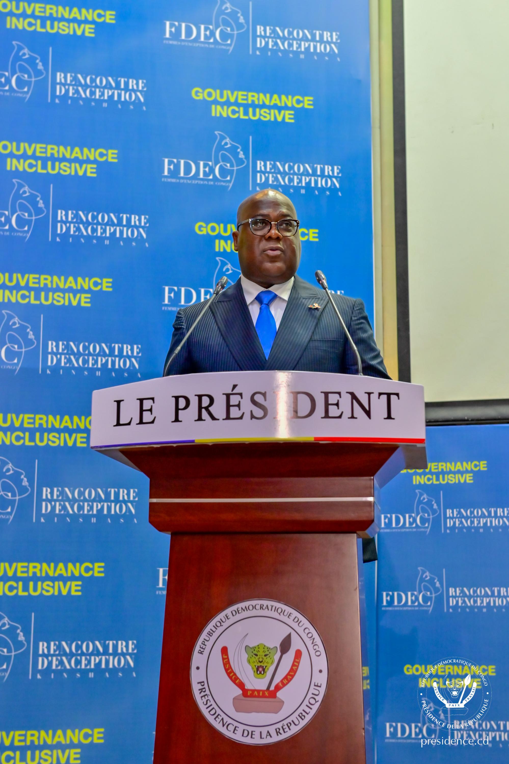 Prenant la parole, le Chef de l’État a déclaré : « en tant que Champion de la masculinité positive, j'ai fait de la lutte contre les violences faites aux femmes une priorité nationale ». Le Président Félix Tshisekedi, qui a tenu à féliciter les Femmes d'exception, a affirmé qu’ « aucune société ne peut atteindre son plein potentiel si elle ignore ou marginalise la moitié de sa population ».