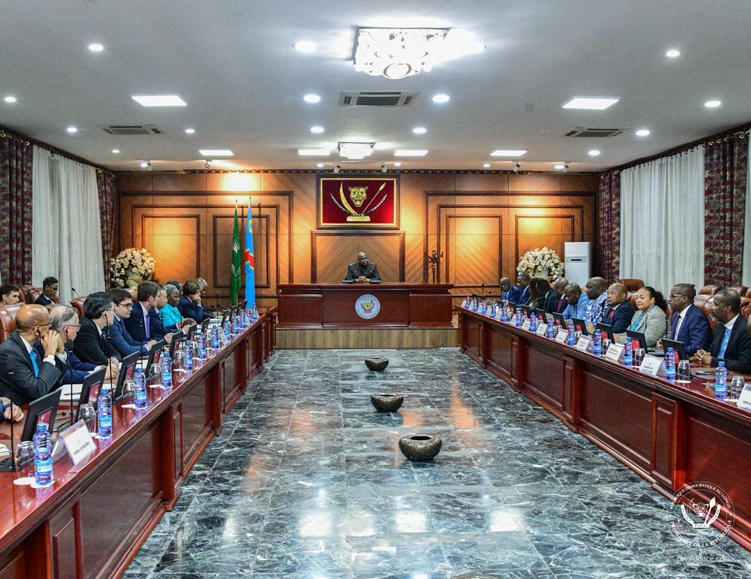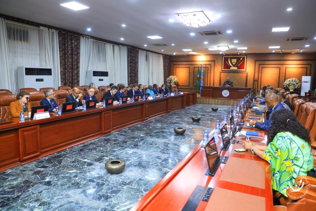 C'est à 19h30 locales que l'entretien entre le Chef de l'Etat et le groupe de 15 ambassadeurs représentant les 5 membres permanents et 10 membres non permanents du Conseil de sécurité de l'ONU ainsi que la Cheffe de la Monusco, Mme Bintu Keita, a démarré.