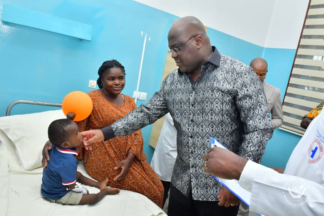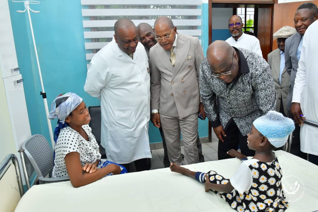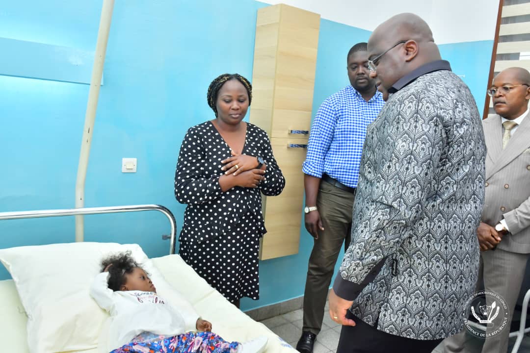 Au repos avant leur départ de l'hôpital, ces enfants et leurs parents ont reçu ce dimanche la visite surprise du Chef de l'Etat, Félix Antoine Tshisekedi Tshilombo.