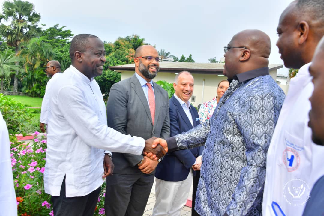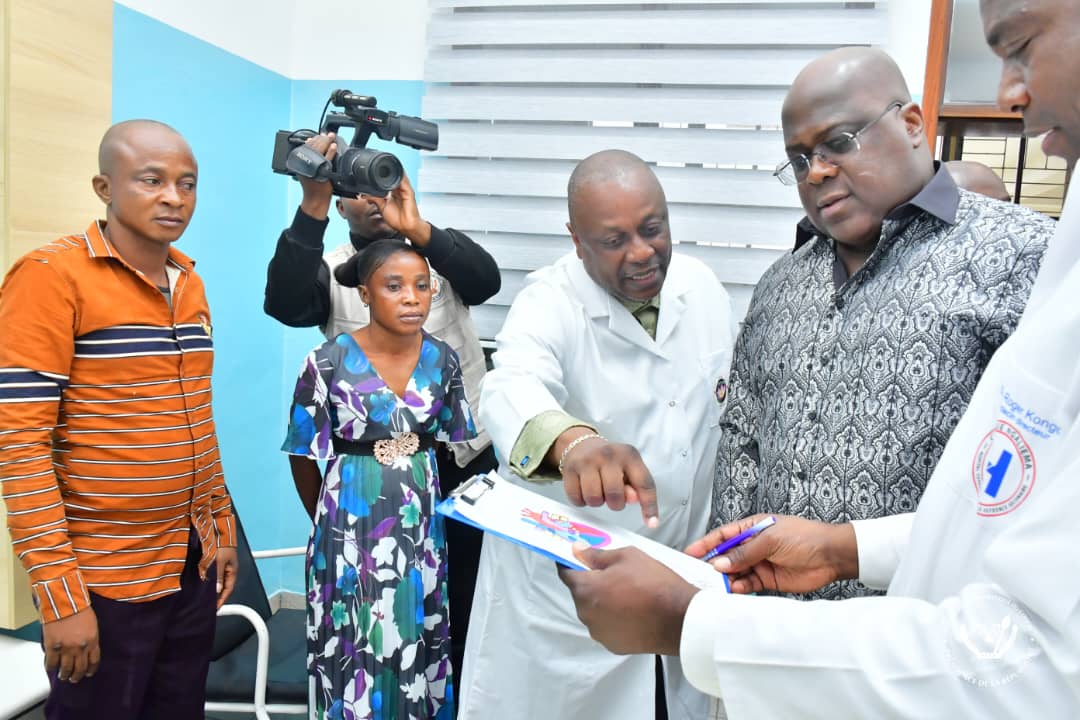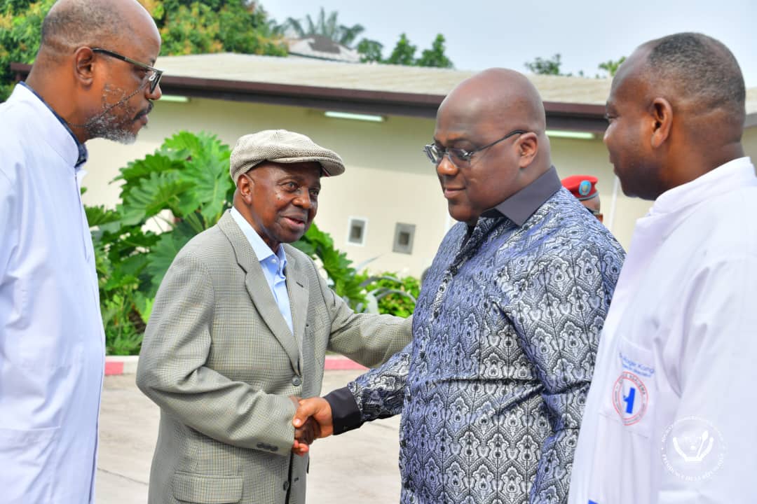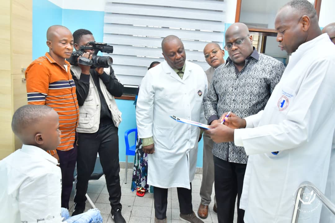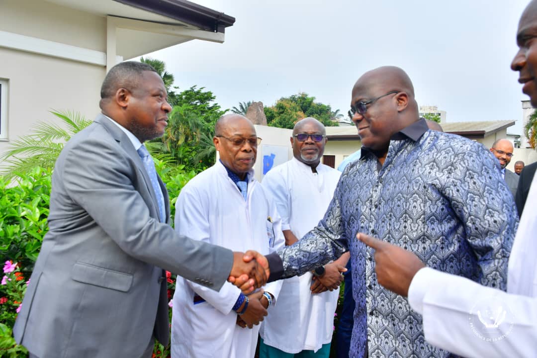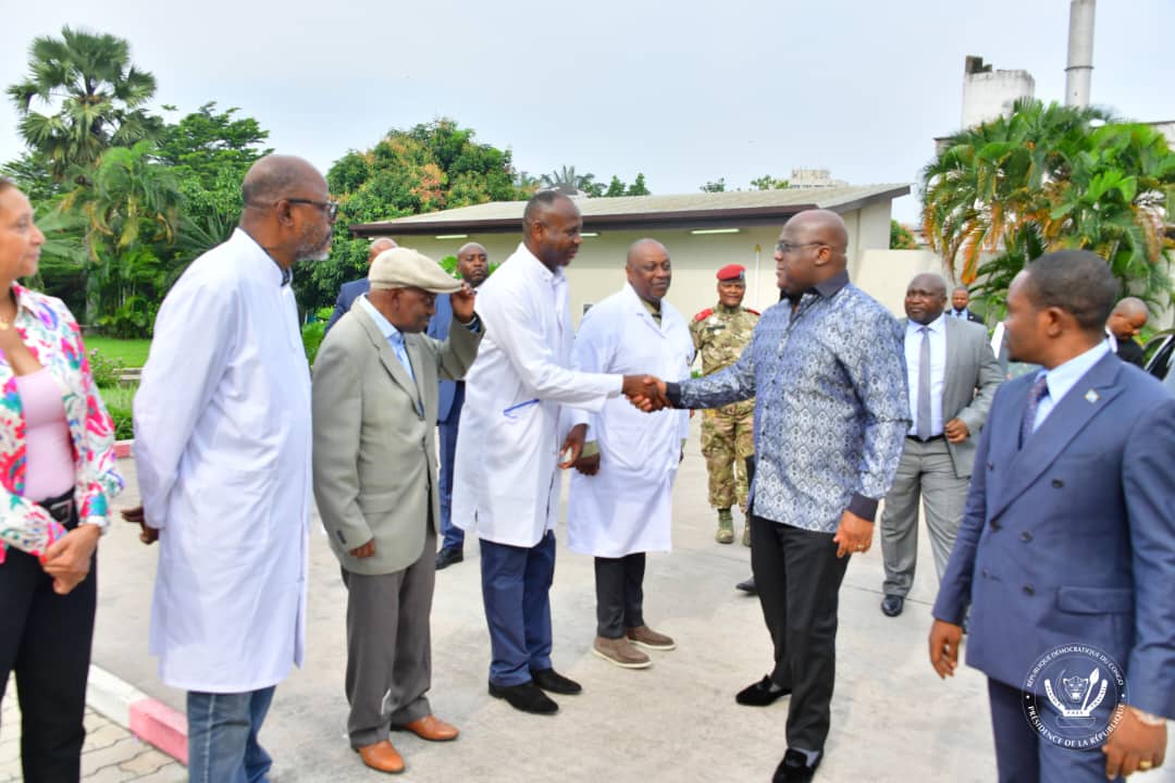 Accueilli par le Ministre de la santé publique, hygiène et prévention, Jean-Jacques Mbungani, et le médecin directeur de la Clinique Ngaliema, le Président de la République a fait le tour des pavillons et échangé avec chaque patient .