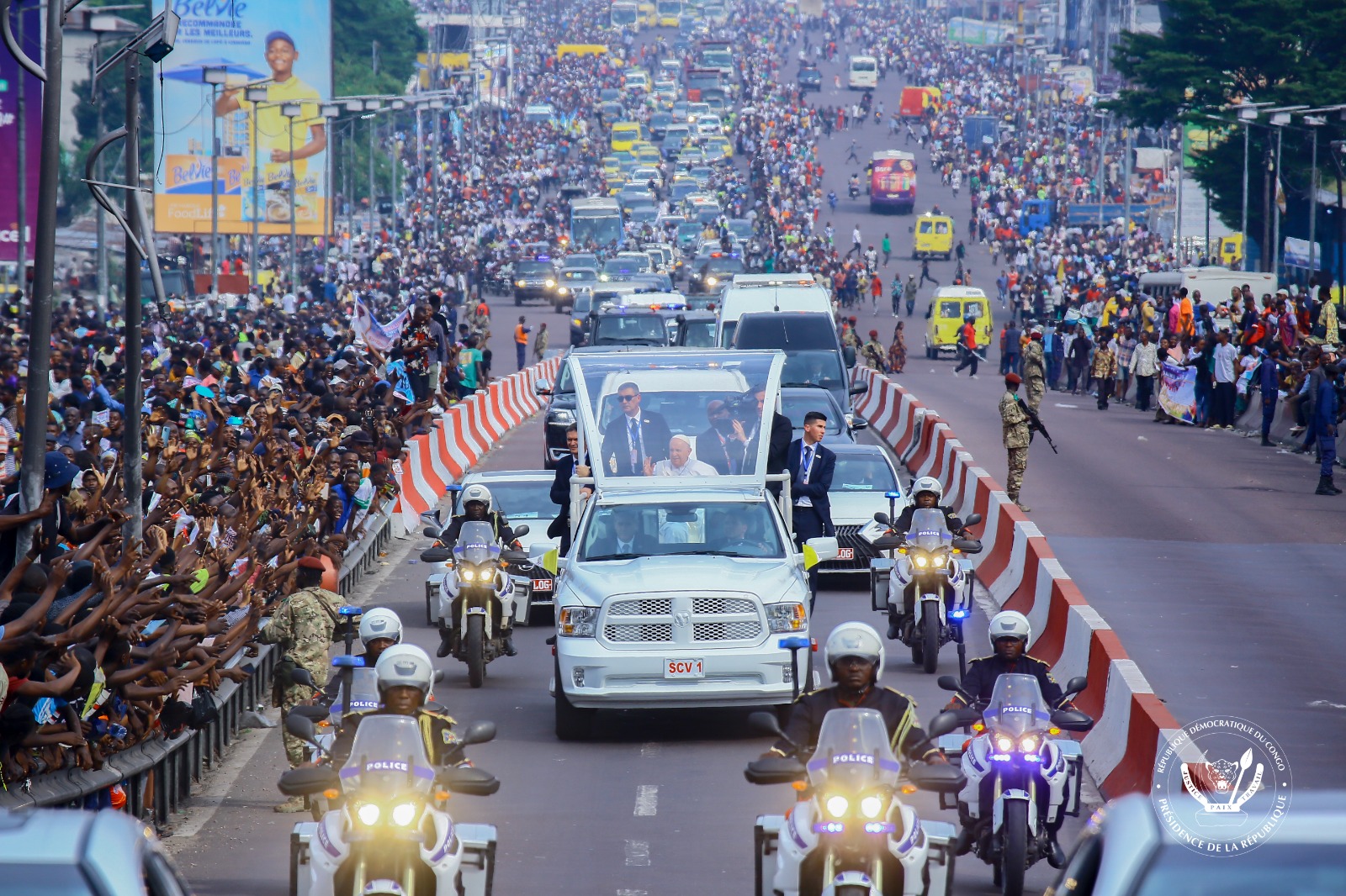 Avec sa papa-mobile spécialement adaptée à sa condition physique, le cortège du Saint Père a traversé la ville de Kinshasa sous les ovations d'une population très mobilisée le long de l'itinéraire.