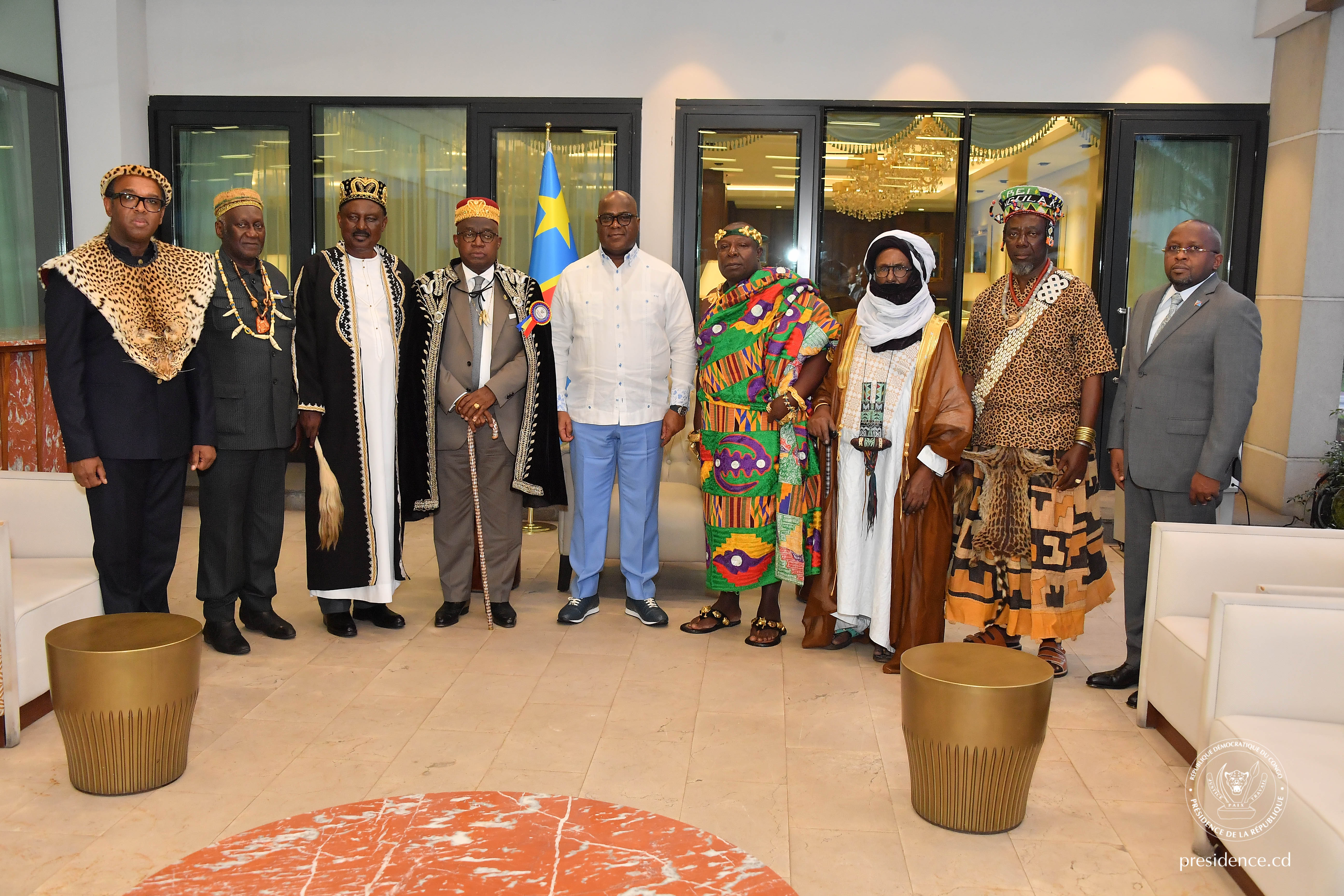 La délégation a offert au Chef de l’État des insignes traditionnels, symboles de la victoire, notamment l'aigle (symbole de la sagesse), la lance (pour la protection du peuple congolais) et le bouclier (pour le rassemblement du peuple congolais), a expliqué M. Robert Nkumu, l'un des responsables.